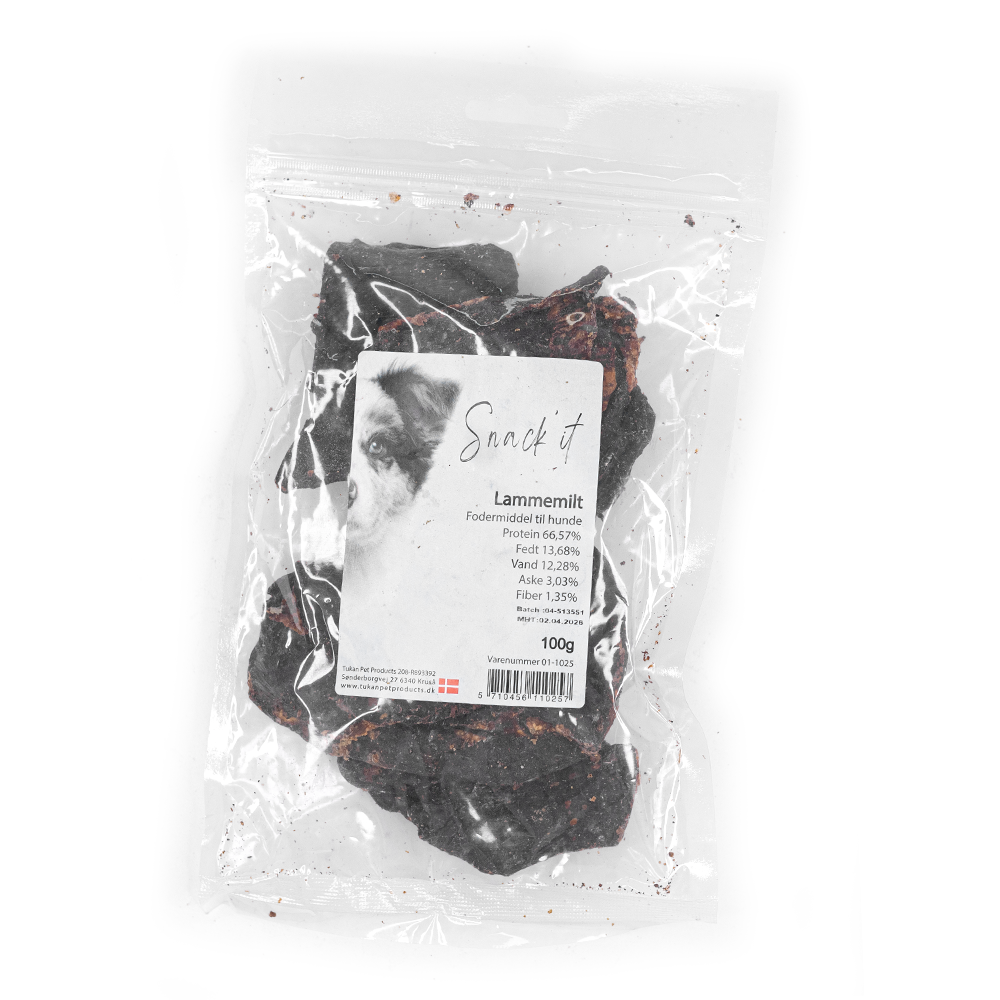 • 100% Naturlig Kvalitet: Snack'it består af tørret lammemilt uden unødvendige tilsætningsstoffer – rent, ærligt og fyldt med næring.