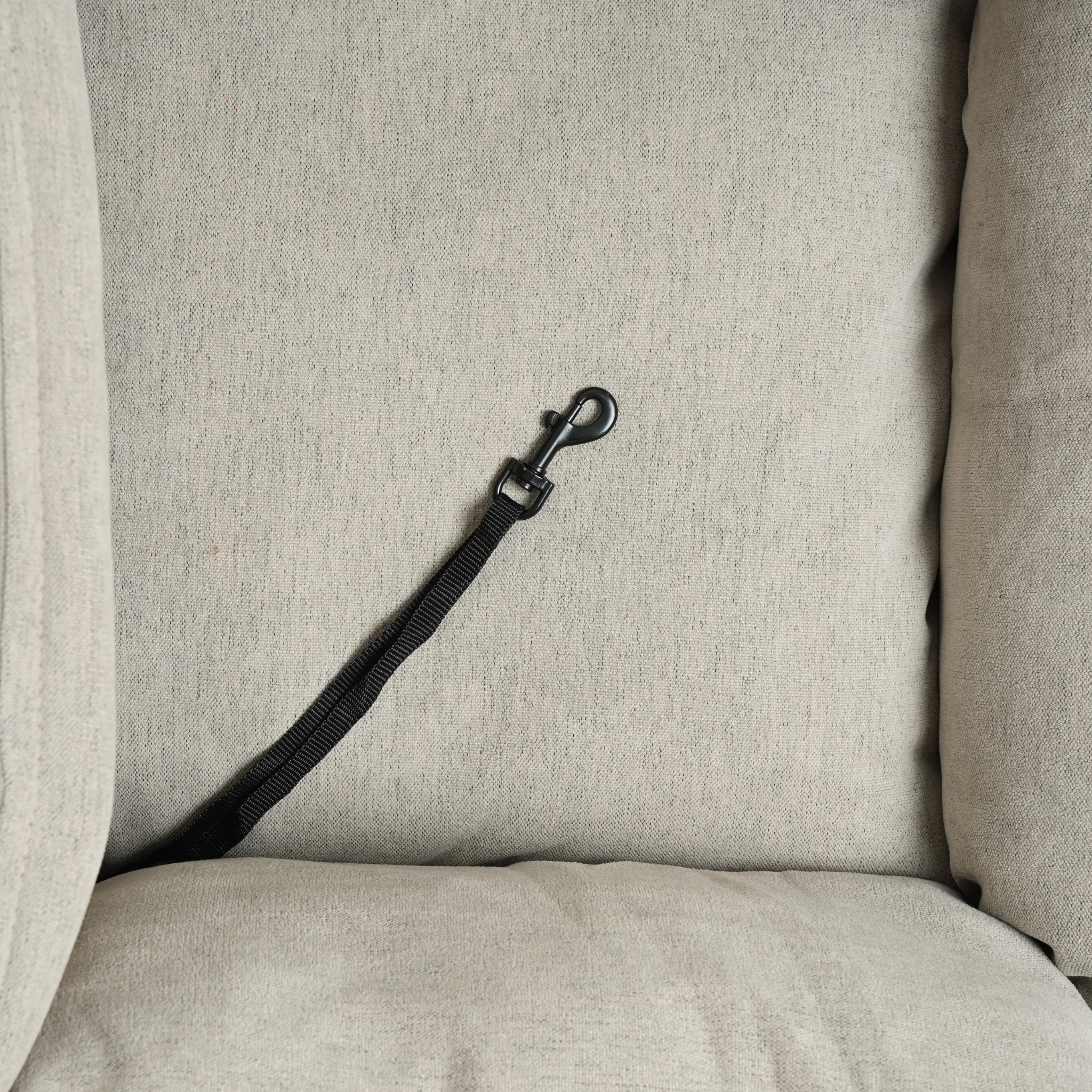 Fenja har indbyggede karabinhager, så du kan fastspænde hundens sele direkte i sædet. Med to karabinhager kan du enten: